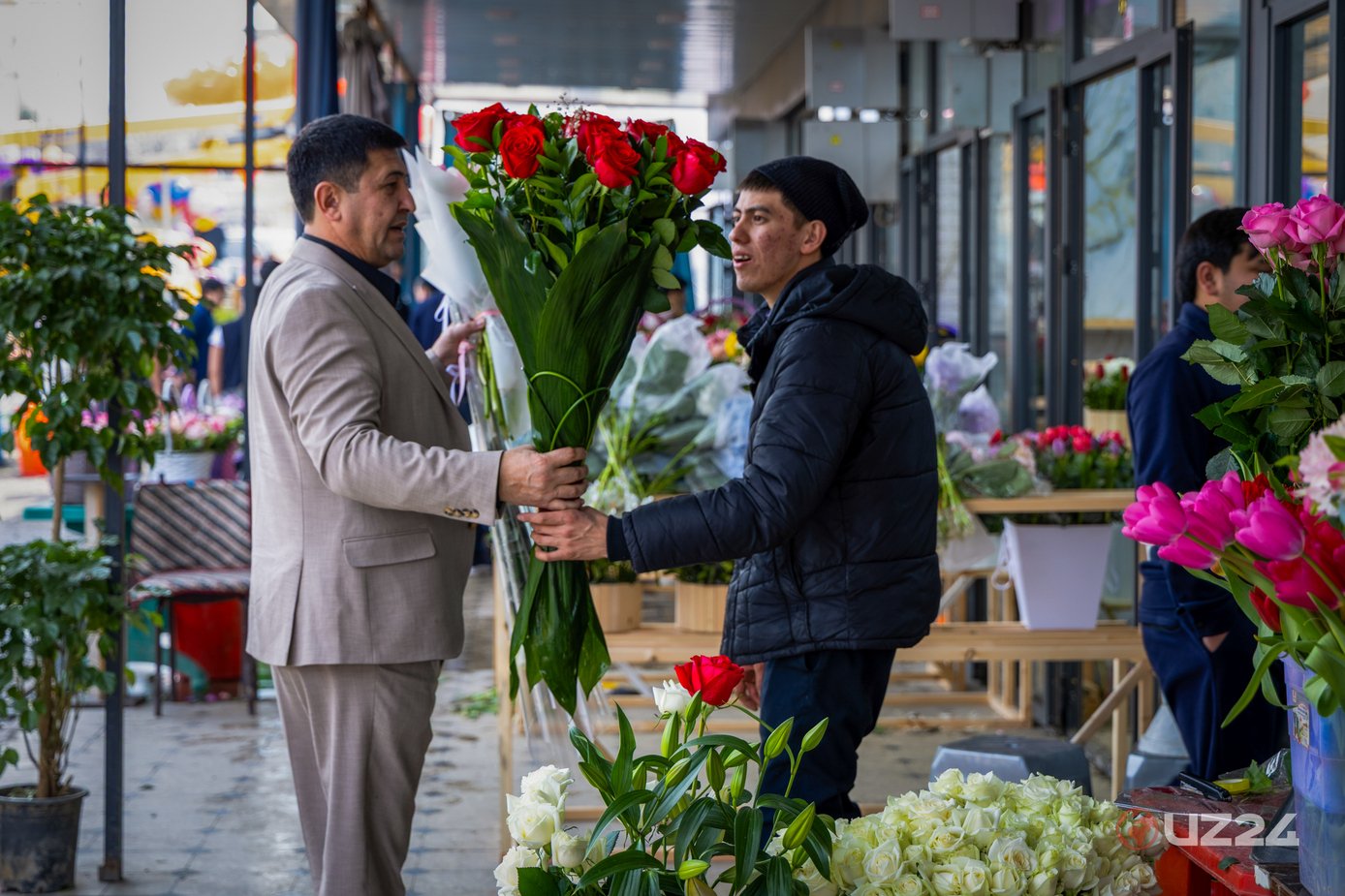 8 Марта — Международного женского дня улицы Ташкента наполнились людьми с цветами и радостными лицами. Цветы покупают не только как подарок, но и как символ внимания и уважения. Поэтому дарить букеты близким в этот день уже давно стало особой традицией.
