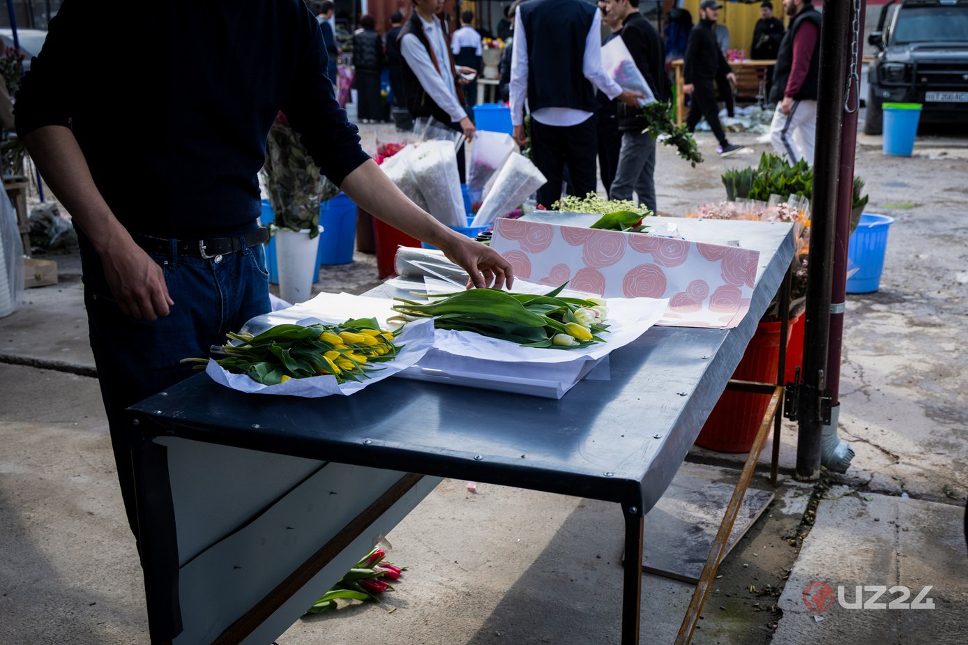 Мы подготовили фоторепортаж с цветочного рынка «Уч Кахрамон», известного в Ташкенте широким выбором и оптовыми ценами. Несмотря на праздничный день, торговля на рынке идёт очень активно. Тёплая погода и праздничная атмосфера добавили рынку особой оживлённости. Прилавки, заполненные яркими цветами, окружены покупателями: кто-то выбирает букет, кто-то уже нашёл красивую композицию, а кто-то спешит покинуть рынок с цветами, чтобы порадовать близких.