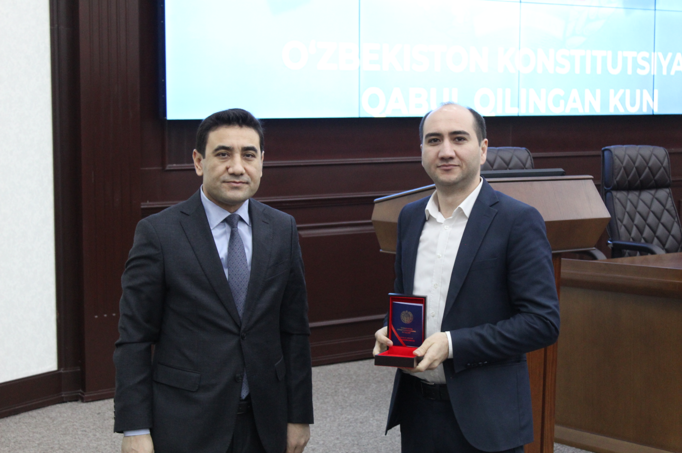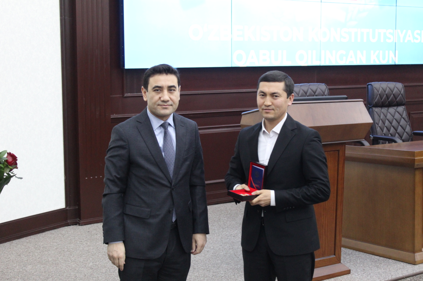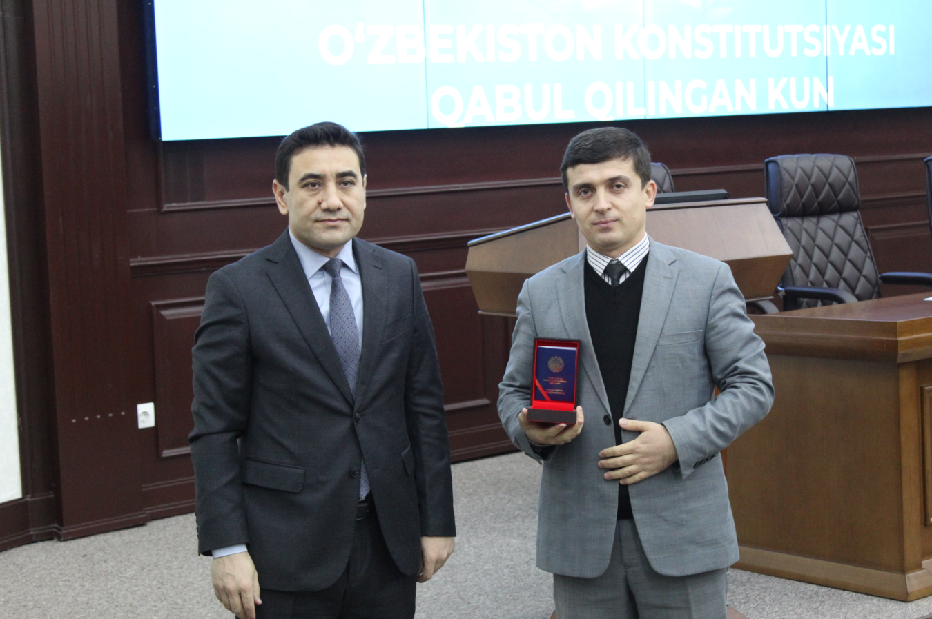 Шундан сўнг, Ўзбекистон Республикаси Президентининг 2022 йил 8 ноябрдаги Фармонига биноан таъсис этилган "Ўзбекистон Республикаси Конституциясининг 30 йиллиги" эсдалик нишони ўз эгаларига топширилди: