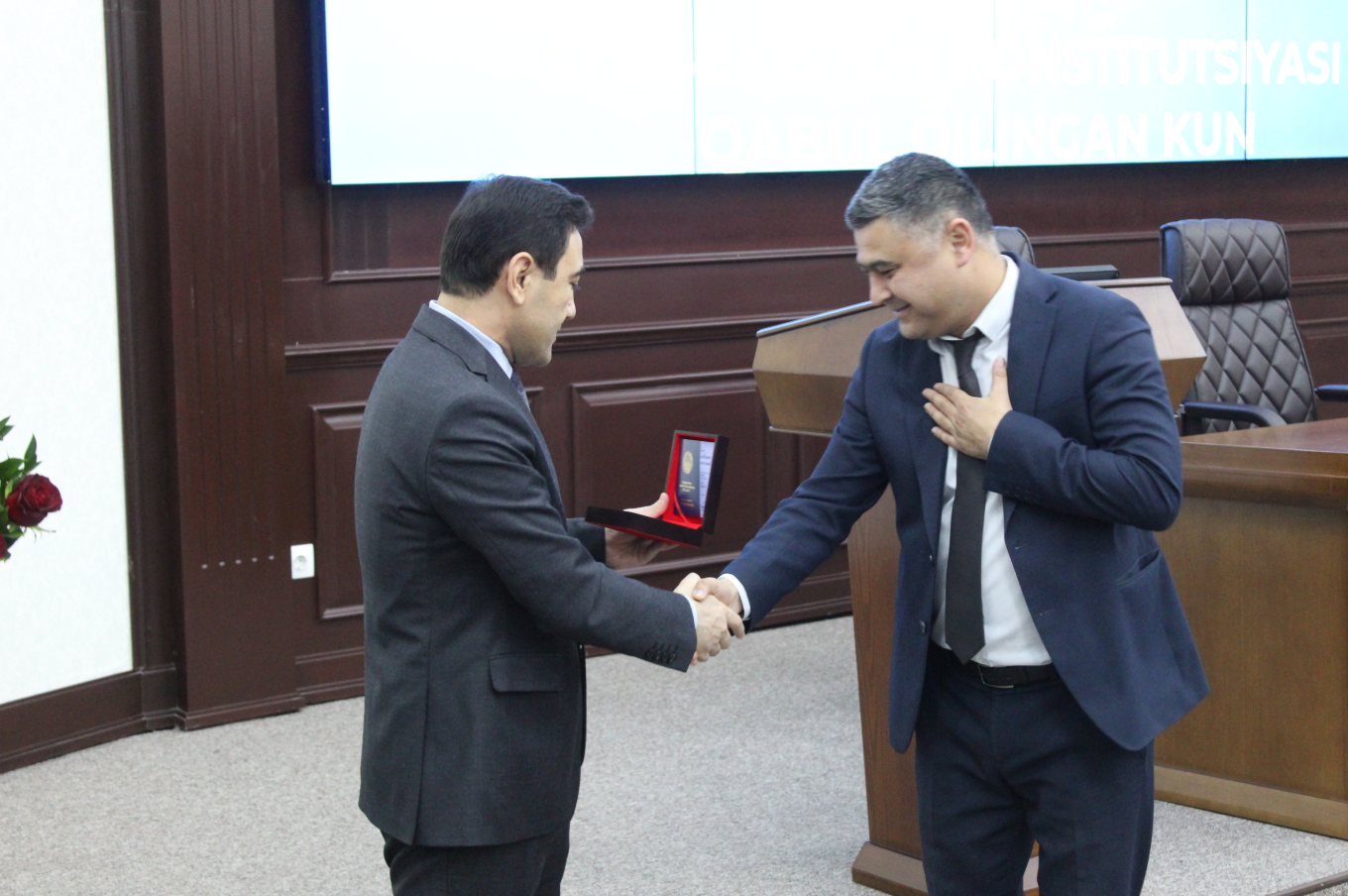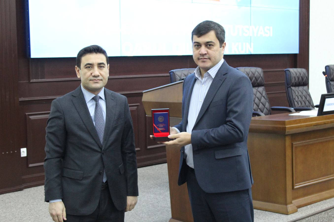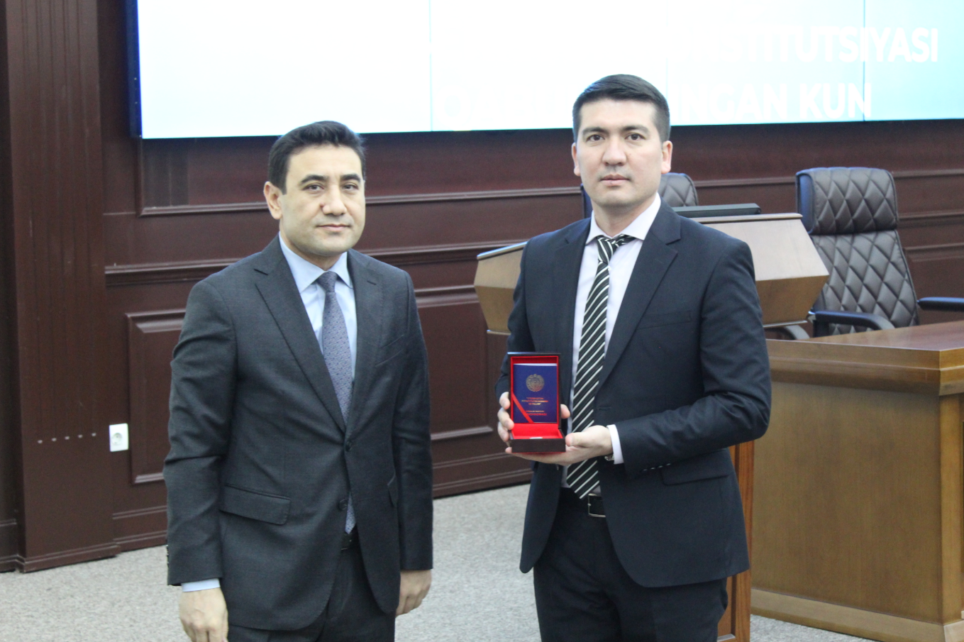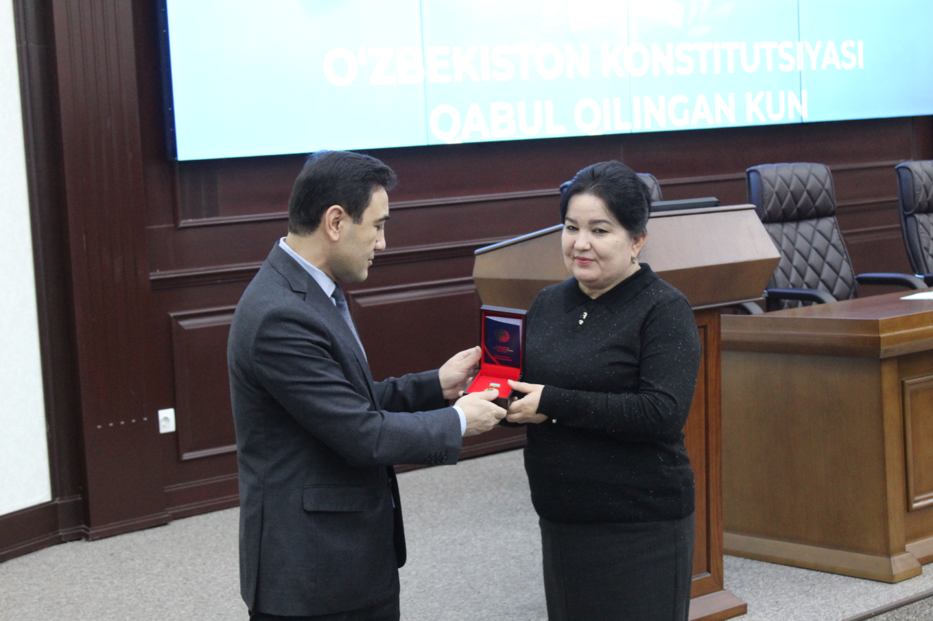 Шундан сўнг, Ўзбекистон Республикаси Президентининг 2022 йил 8 ноябрдаги Фармонига биноан таъсис этилган "Ўзбекистон Республикаси Конституциясининг 30 йиллиги" эсдалик нишони ўз эгаларига топширилди: