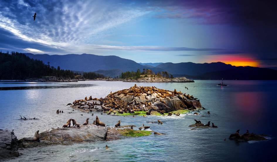 Uning Day to Night (“Tongdan tungacha”) texnikasidagi yana bir asari Malaspina bo‘g‘ozidagi (Kanada) dengiz sherlarini tasvirlaydi. Ilgari yo‘qolib ketish xavfi ostida bo‘lgan bu tur himoya choralari tufayli asta-sekin o‘z sonini tiklamoqda.