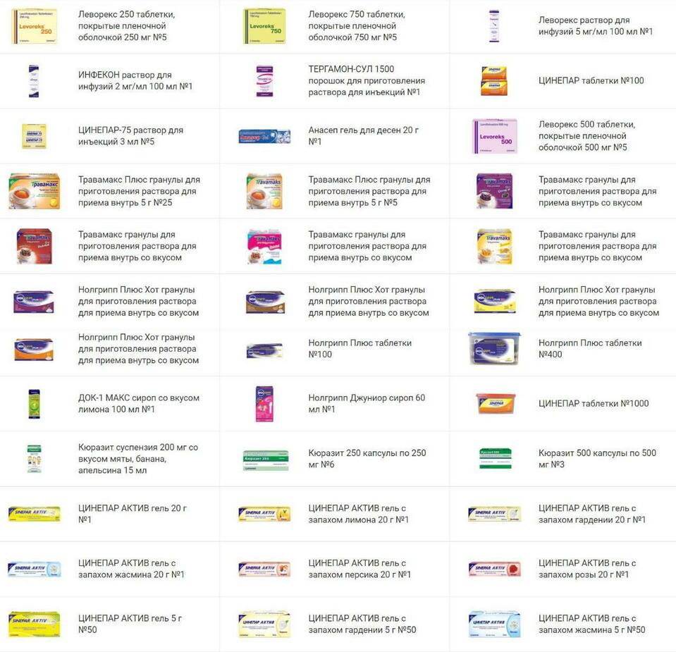 Қуйидаги суратда ушбу препаратлар рўйхати келтирилган.